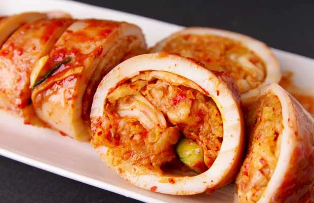 丸ごと一匹のイカにキムチが詰まっているという素晴らしい食べ物です…( =•ω• =)