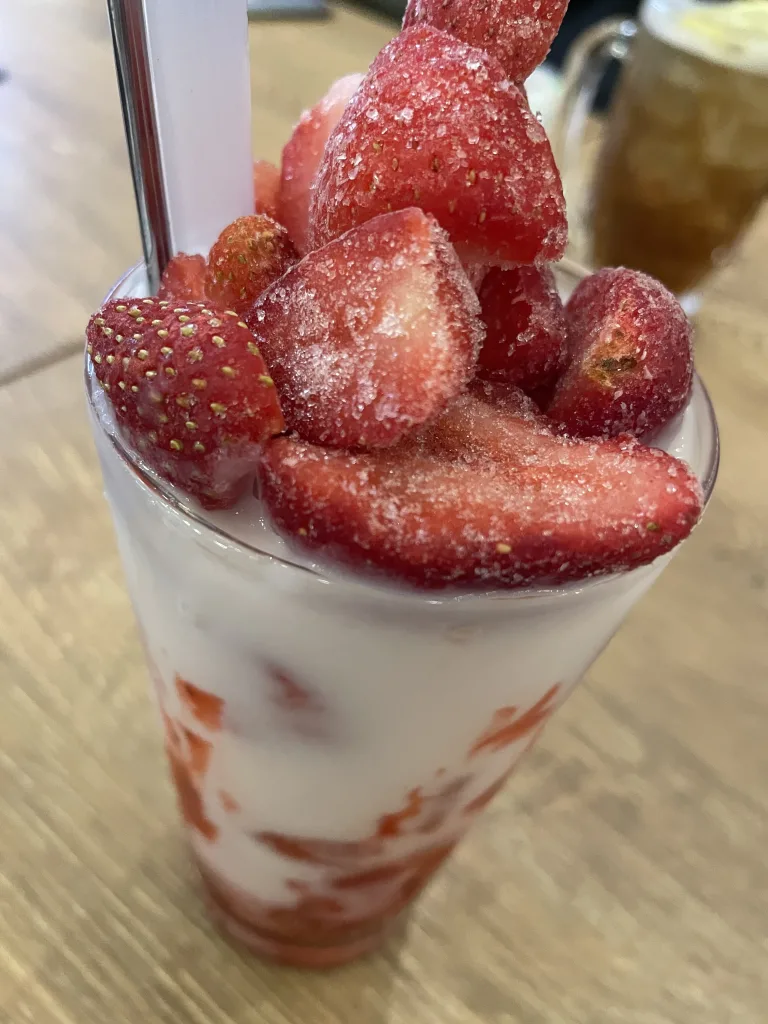 苺のお酒~~ฅ( •ω• ฅ) 2026年2月19日 内勤ブログ こんにちは♪ おクンニ学園ですฅ( •ω• ฅ) 苺のお酒が美味しかったです!! いちごミルクみたいな味なんですけど、ちゃんとお酒も入っていて混ぜて美味しくいただきました♪ また飲みたいな~~ プロントです♪
