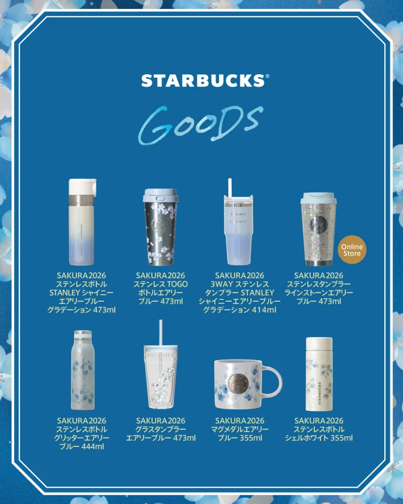 今はピンクのグッズが店頭に並んでいるんですけど近々こちらの青い🌸グッズが出るらしい!
